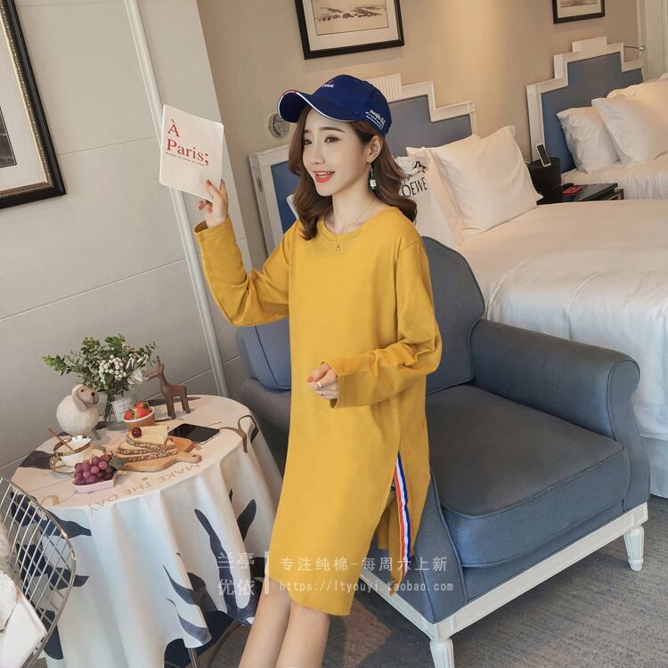2021年初秋プラスサイズスプリットミドル丈長袖Tシャツスカート女性デザインセンス純綿ボトミングシャツトップ冬トレンド ロング コットン 大きめサイズ オータム 秋物 ウィンター 冬物 ピュア TB2-16 TB2-1636038923828