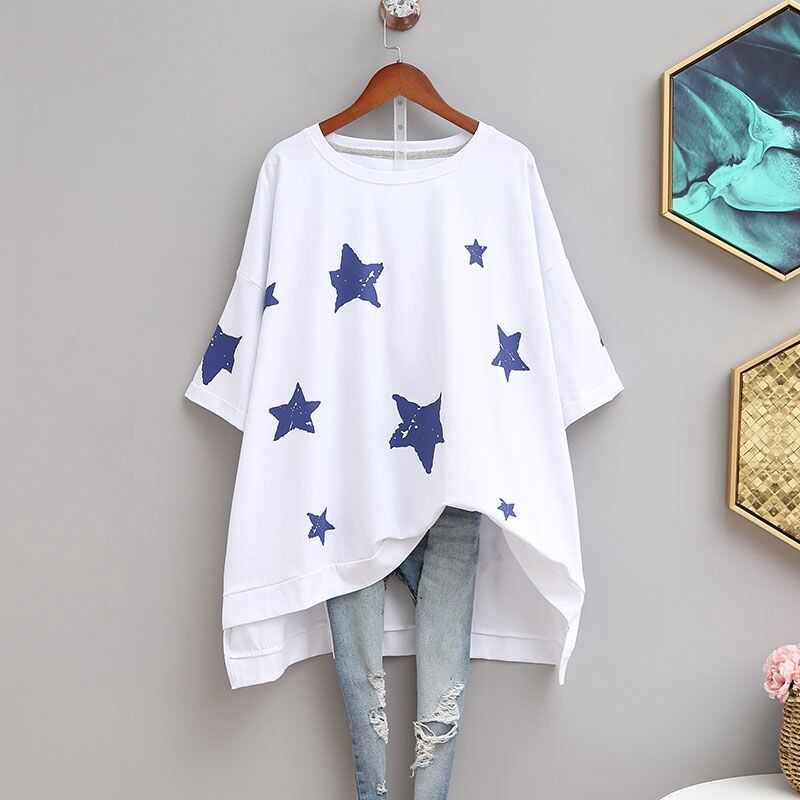 スタイルサマー半袖Tシャツ女性ルーズラージサイズフロントショートバックロングヘッジワイルドウエスタンスタイルミドル丈Tシャツ 大きめサイズ 夏物 TB2-53 TB2-5327003777942
