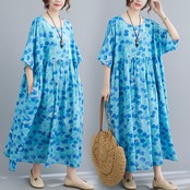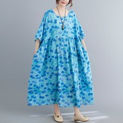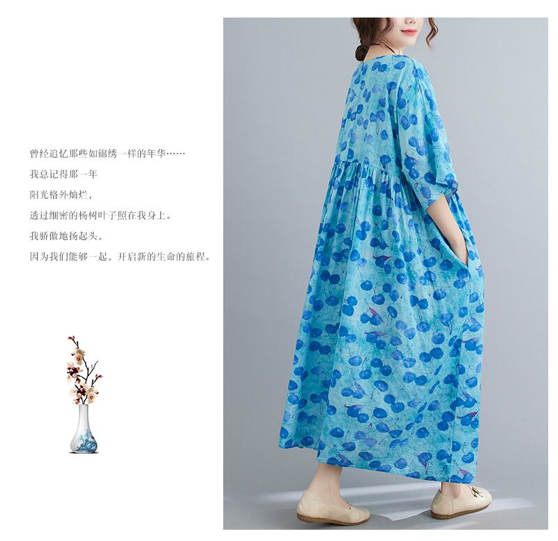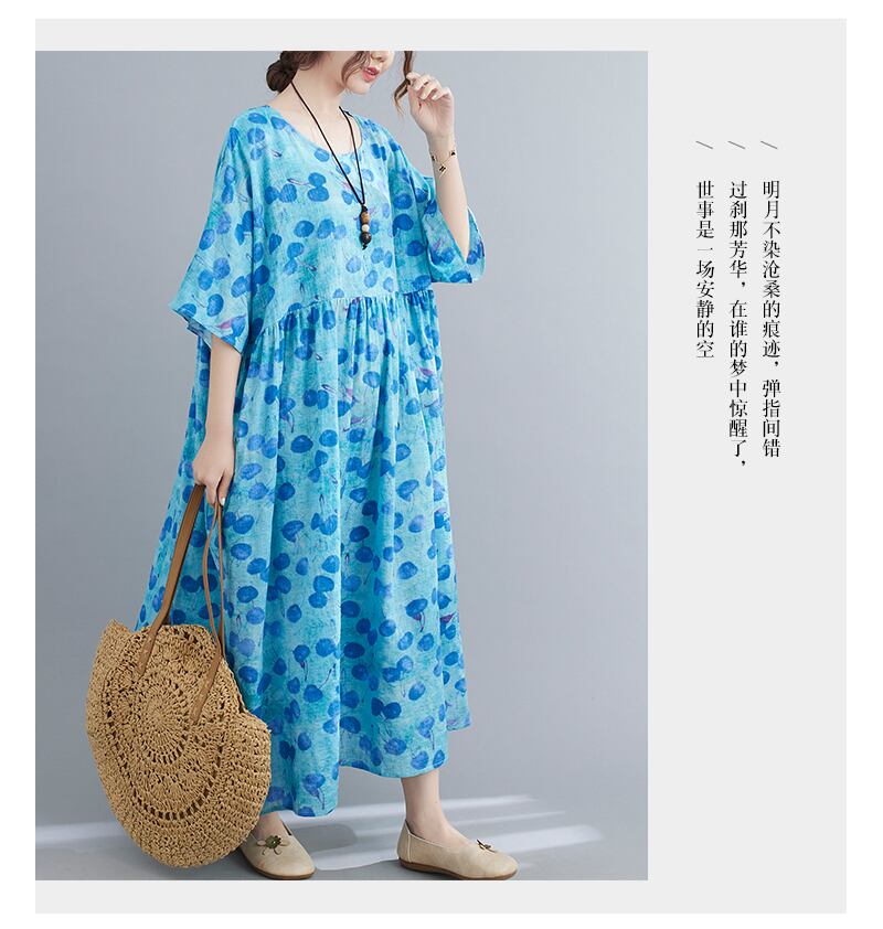 ロングスカート、半袖、ラージサイズ、夏200ポンド、お腹を覆う、痩せて太っている人、膝上にゆるい長い太ったmmドレスの印刷 ショート ハーフスリーブ 大きめサイズ サマー 夏物 TB2-36 TB2-3693212233103
