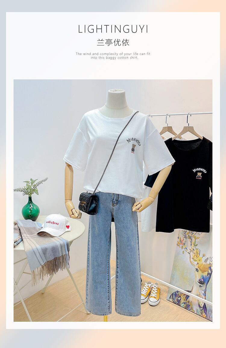 夏の新しい白い純綿のTシャツ学生クマプリントコンピオネート女性ins潮緩い半袖トップボトミングシャツ ホワイト コットン サマー 夏物 ピュア TB2-16 TB2-1649798609956