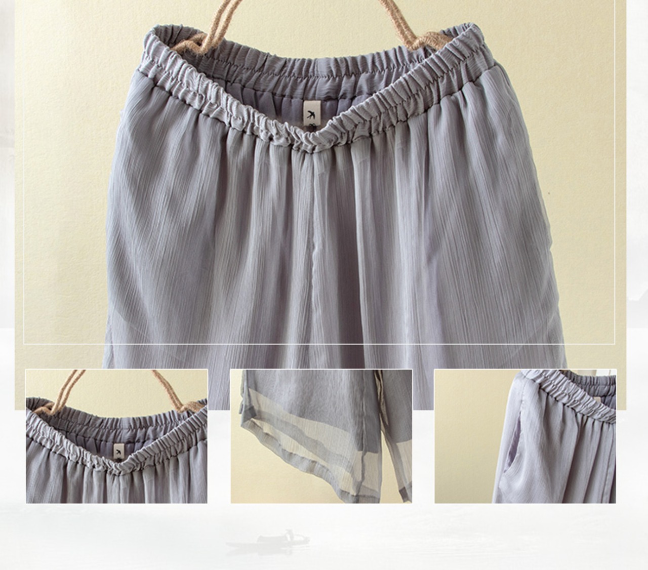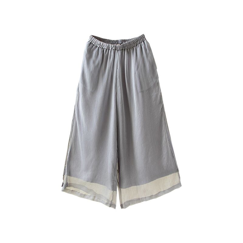 SuyiLane文学とアートルーズウエストコットンリネンパンツワイドレッグパンツラージサイズエラスティックウエストクロップドパンツリネンパンツレディースサマー 伸縮 大きめサイズ 夏物 ワイドパンツ TB2-56 TB2-5630797855567