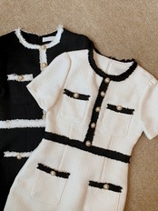 南Xiaoxiangfengレトロ半袖コントラストカラーニットドレス女性の薄い夏のバッグお尻スリムスリム サマー 夏物 TB2-52 TB2-521075157784
