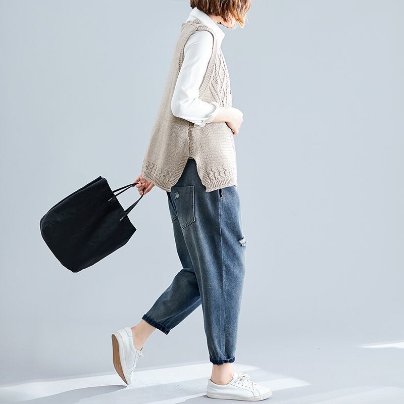 女性のプラスサイズのニットチョッキ春と秋のアウターウェアルーズで薄いウエスタンスタイルのベストジャケット2021新しい女性 大きめサイズ スプリング 春物 オータム 秋物 TB2-49 TB2-4930691569503