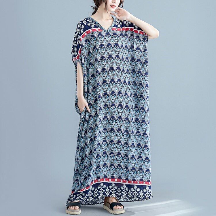 超ロングモップドレス、太ったお姉さん、大きいサイズ、お腹を覆う、厚い洋ナシ型のフィギュア、高脂肪のサマードレス、プリント 大きめサイズ 夏物 TB2-36 TB2-3625071334489
