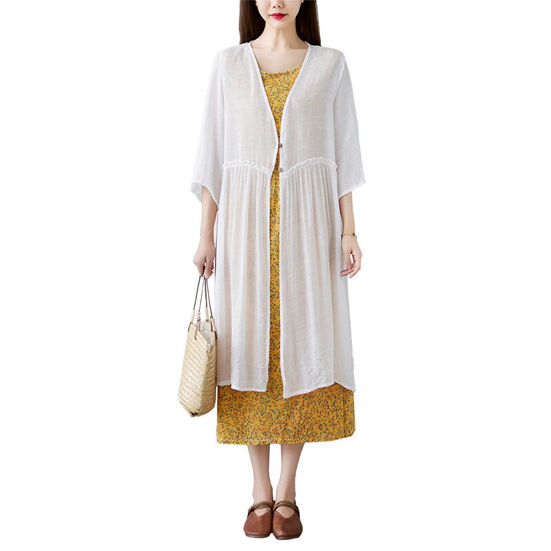 ラージサイズの女性の夏のルーズリテラシーピュアカラーアウターウェアミドル丈エアコンシャツ5点袖軽量日焼け止めカーディガンジャケット 大きめサイズ サマー 夏物 TB2-50 TB2-5039566297414