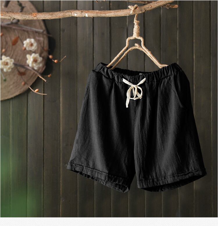 コットンとリネンのショーツ女性の夏のルーズラージサイズの女性の巾着弾性ハイウエストビーチパンツ薄いストレートリネンワイドレッグショーツ ハイウェスト エラスティック 伸縮 大きめサイズ サマー 夏物 ブルマー TB2-50 TB2-5016279833180