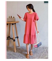 ヨーロッパとアメリカの外国貿易夏の新しいスタイルの大きなサイズのラウンドネック蓮の葉の袖ニットロングスカートファットルーズTシャツトップドレス 大きめサイズ サマー 夏物 Oネック ヨーロピアン TB2-68 TB2-685418452208