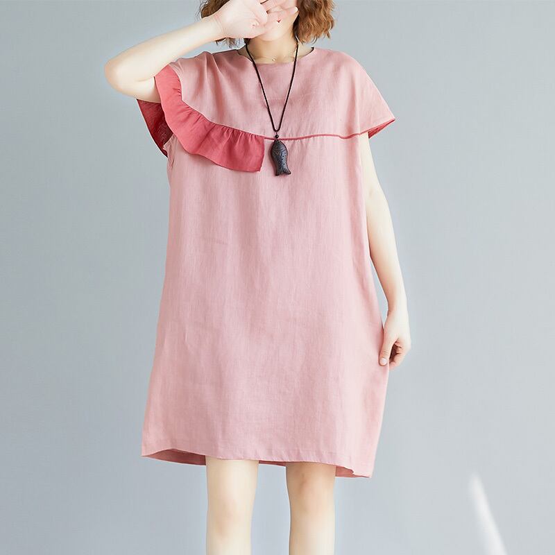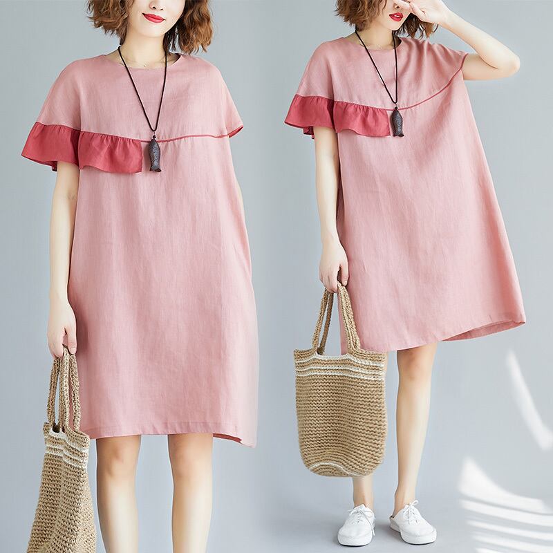 プラスサイズの女性の2021年夏の新しいルーズアシンメトリーレースラウンドネックドレス女性のeignスタイルのコントラストスカート 大きめサイズ サマー 夏物 Oネック TB2-49 TB2-4955458104689