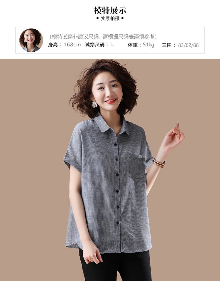 2020年夏の文学ファンルーズで薄いラペルストライプ半袖シャツプラスサイズの女性の太いmmカバーベリートップ 大きめサイズ サマー 夏物 TB2-53 TB2-5367377484916