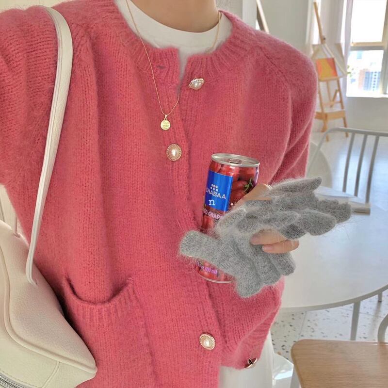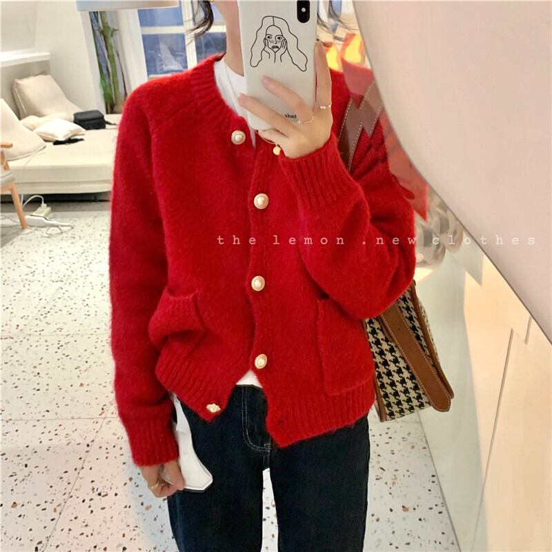 春の怠惰な優しい風新年赤小さな香りのよい風セータージャケット女性パールバックルモヘアニットカーディガン レッド スプリング 春物 真珠 TB2-52 TB2-5251804808208