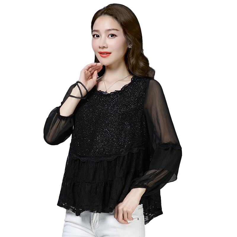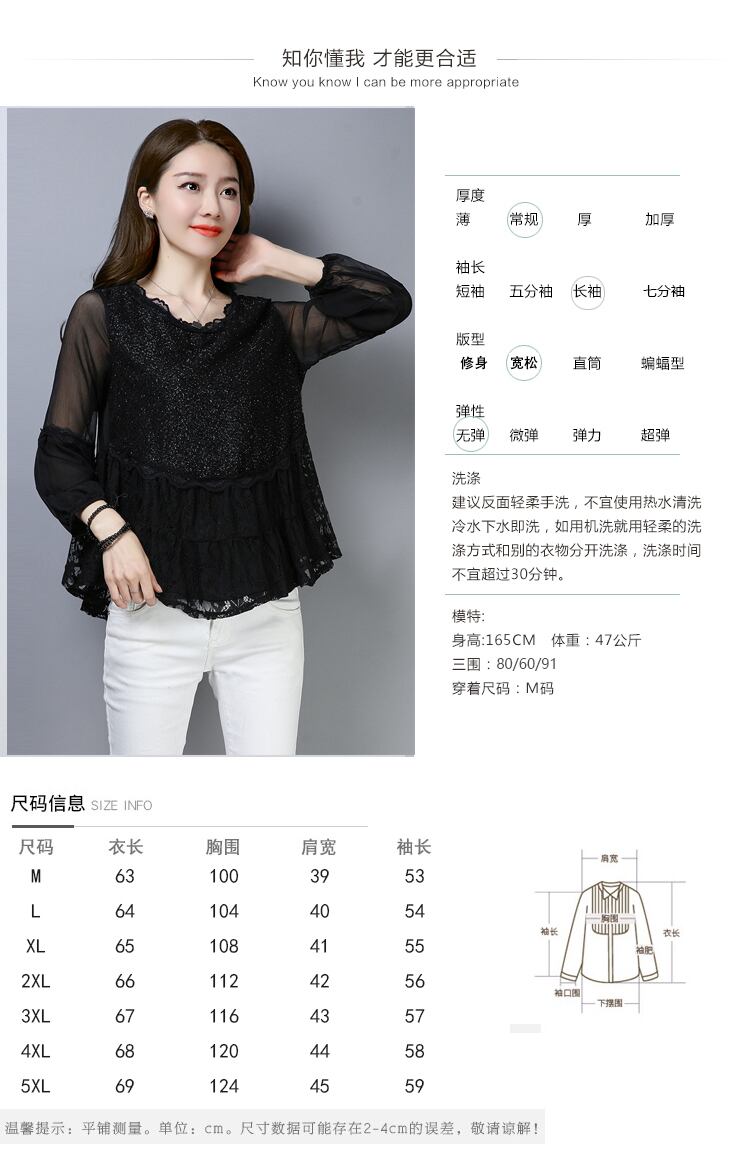 ウエスタンスタイルプラスサイズブラウス女性の2021年春新しいスタイルの薄くて用途の広いレースステッチ長袖ボトミングシャツ女性オールマッチ ロング 大きめサイズ スプリング 春物 TB2-49 TB2-4913255581335