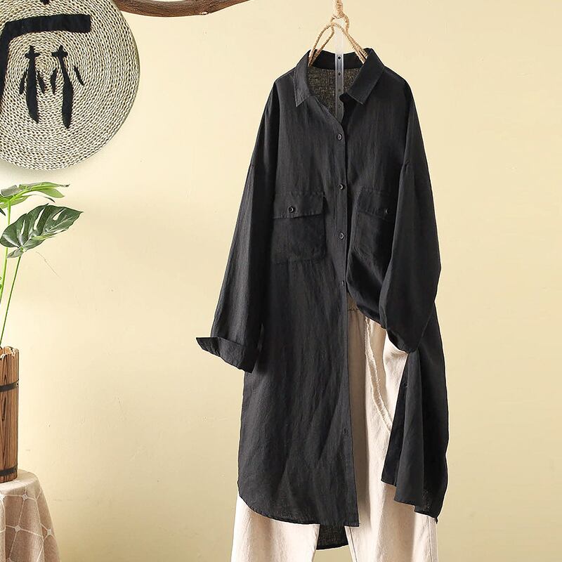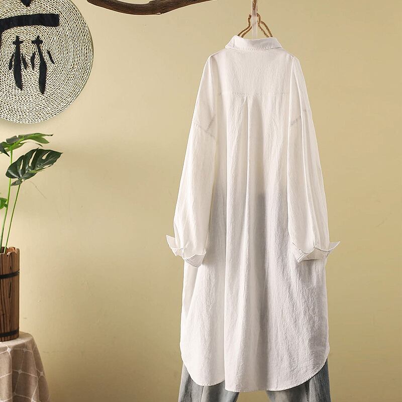 Suyi Lane2020サマープロダクツルーズラージサイズピュアカラードレスミドル丈コットン&リネンオールマッチシャツレディース 大きめサイズ 夏物 TB2-56 TB2-5692472661637