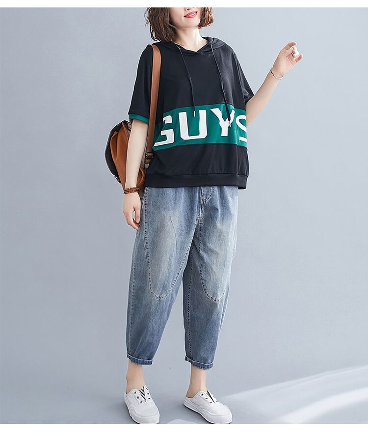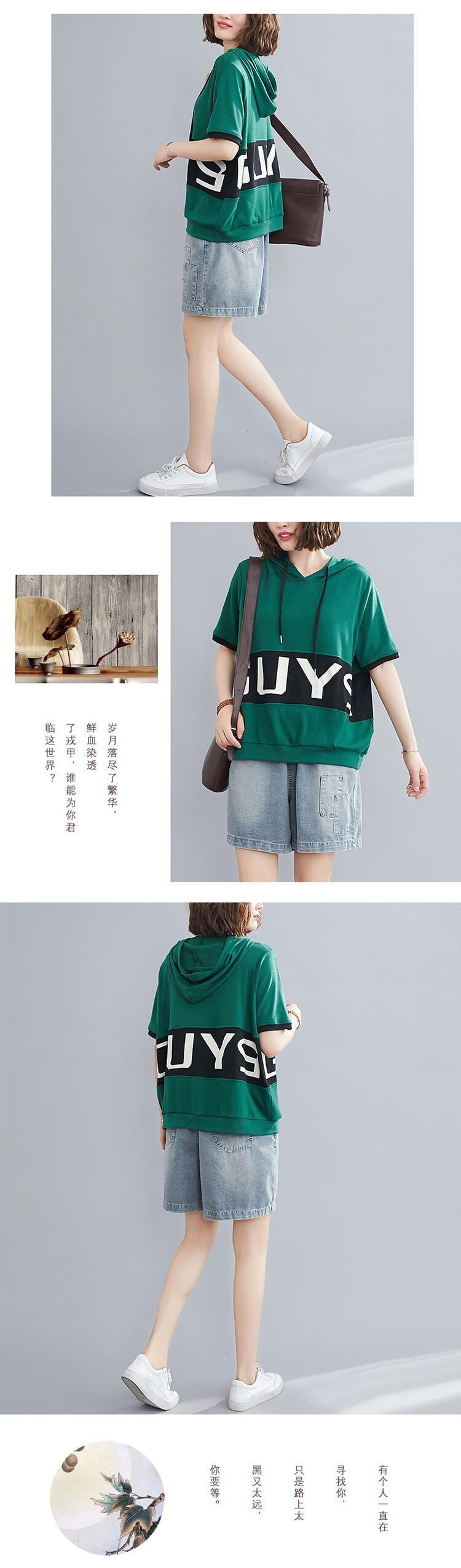 2020年夏の新しいeignトレードルーズラージサイズバージョンのカラーマッチングラージレタープリントフード付きセーター半袖Tシャツ女性 大きめサイズ サマー 夏物 TB2-59 TB2-5915549008854