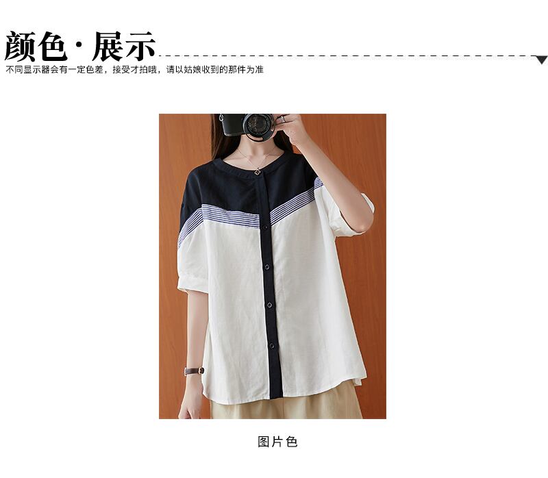 プラスサイズのレディースサマードレス2021ニューシャツレディースファッションコントラストカラーストライプトップルーズカジュアル半袖シャツ 大きめサイズ 夏物 TB2-49 TB2-4950444588225