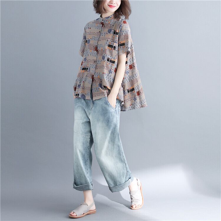ファットmmサマープリントレトロスタンドカラー半袖カーディガンシャツお腹を覆うラージサイズ200kgファッションスリムシャツ 大きめサイズ 夏物 TB2-36 TB2-3671994452823