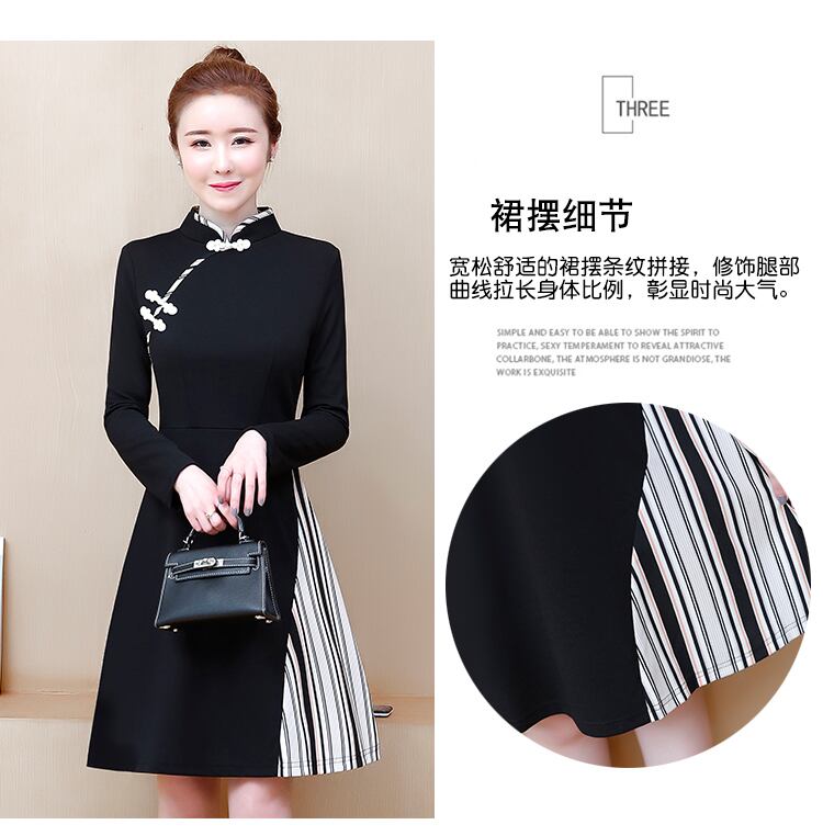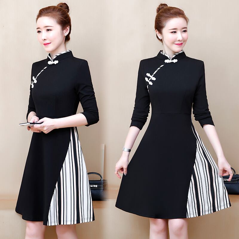 180kgの外国貿易特大サイズの女性のヨーロッパとアメリカのスタイルのチャイナドレスは長袖のドレスを改善しました中国のスタイルの春と秋の底潮 ロング 大きめサイズ スプリング 春物 オータム 秋物 ヨーロピアン TB2-68 TB2-6865435403576