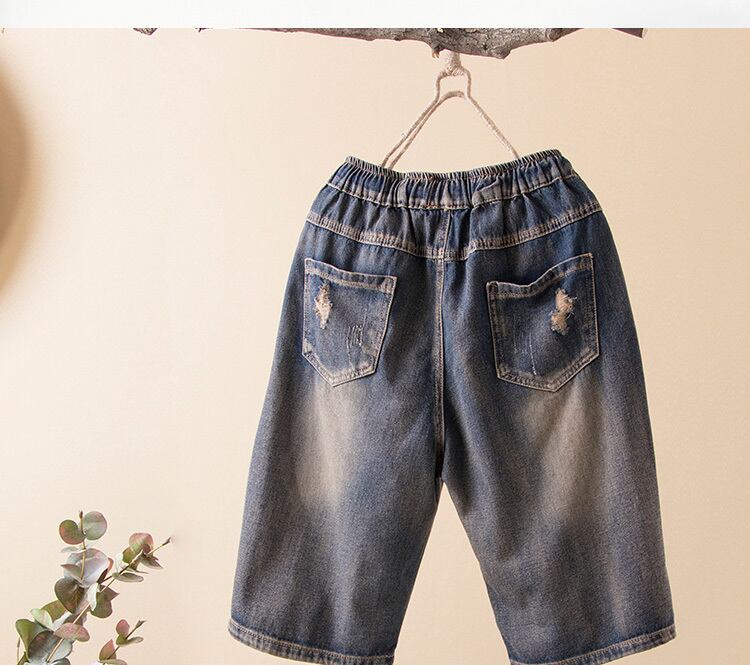 SuyiLaneレトロ文学とアートジーンズ子供の夏の新しいスタイルの薄いパンツ伸縮性のあるウエストレースは女性のズボンを破りました エラスティック サマー 夏物 TB2-56 TB2-5614587657774