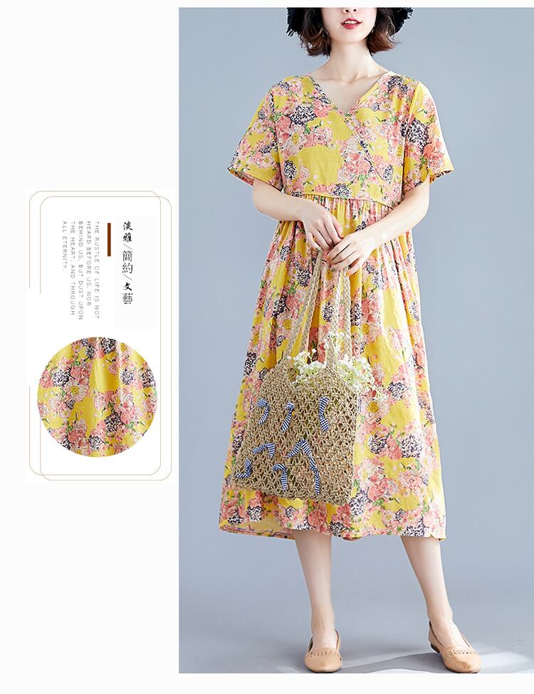 腹を覆う気質ドレスラージサイズレディースミドル丈サマーファットmm半袖Vネックファッショナブルな年齢を減らすAラインスカート 大きめサイズ 夏物 TB2-36 TB2-3693684998792