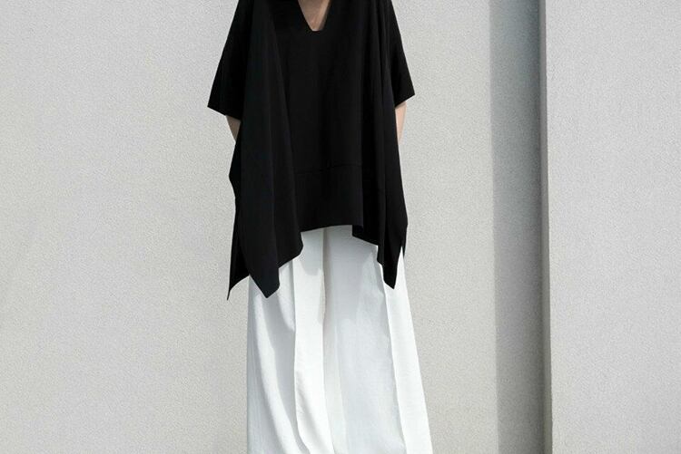 ヨーロッパとアメリカのeignトレードビッグサイズのストリートスタイルのファッションパーソナリティVネックの不規則なTシャツルーズで薄い女性のバットスリーブトップ ヨーロピアン TB2-68 TB2-6871598543075