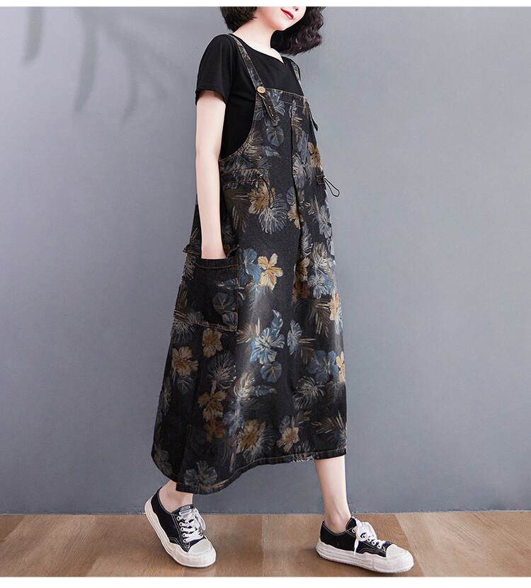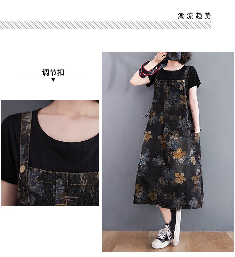 ファットシスタープラスサイズの女性の夏のルーズな年齢を減らすプリントドレスの巾着でお腹を隠すのは薄いデニムストラップスカートでした 大きめサイズ サマー 夏物 TB2-50 TB2-5046411388934