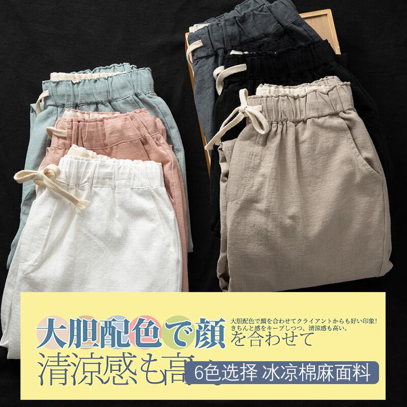 コットンリネンパンツレディースサマールーズラージサイズカジュアルストレートスモールフィートマザーシンラディッシュナインポイントパンツリネンハーランパンツ 大きめサイズ 夏物 TB2-50 TB2-509406122237