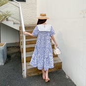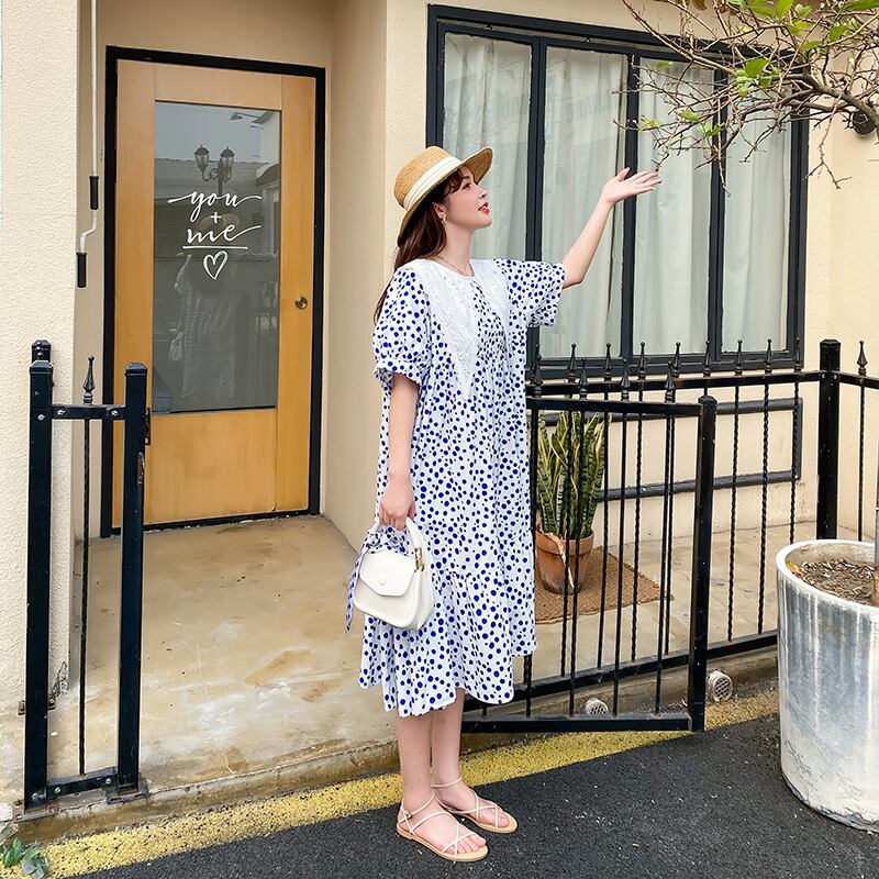 ゆるい、細い、太った人、隠された肉、花柄のスカート、太った姉妹、プラスサイズの女性用Aラインスカート、夏の人形の襟のドレス 大きめサイズ サマー 夏物 TB2-36 TB2-3677640851731