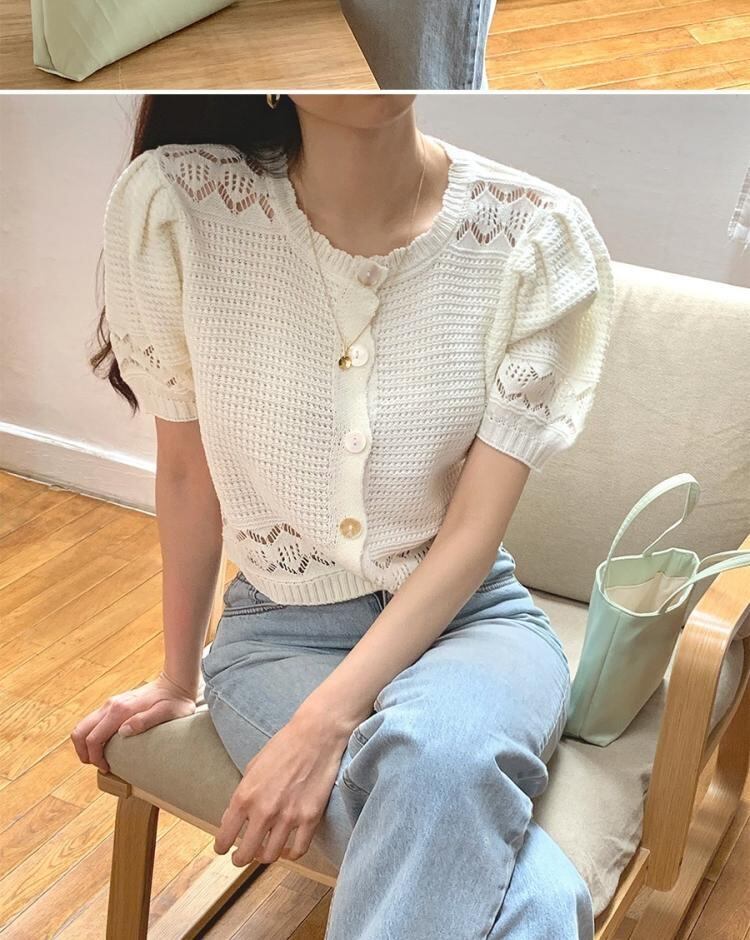 優しい風と甘いかぎ針編みの中空パフスリーブアイスシルクセーターカーディガンシャツ薄い女性の夏のショート 大人ガーリー スウィート キュート カジュアル サマー 夏物 TB2-52 TB2-524784978769
