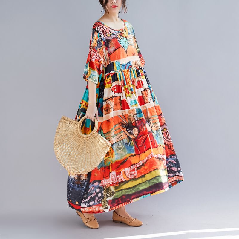 特大サイズの女性用200kgルーズベリーロングスカートプリントプラスファットプラスサイズ250kgミドル丈ドレス 大きめサイズ TB2-36 TB2-3634876294327