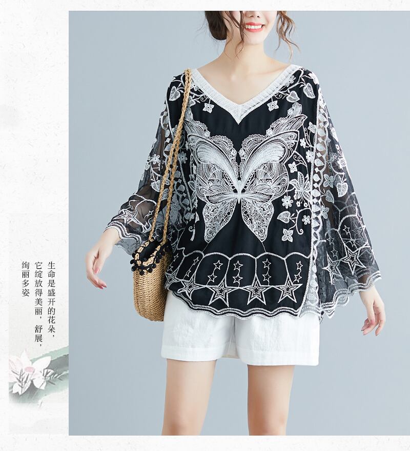 バットスリーブレースシャツ女性2021年新年齢削減プラスサイズ女性のルーズメッシュスプライシングプルオーバーブラウス夏 大きめサイズ サマー 夏物 TB2-49 TB2-4957002536404