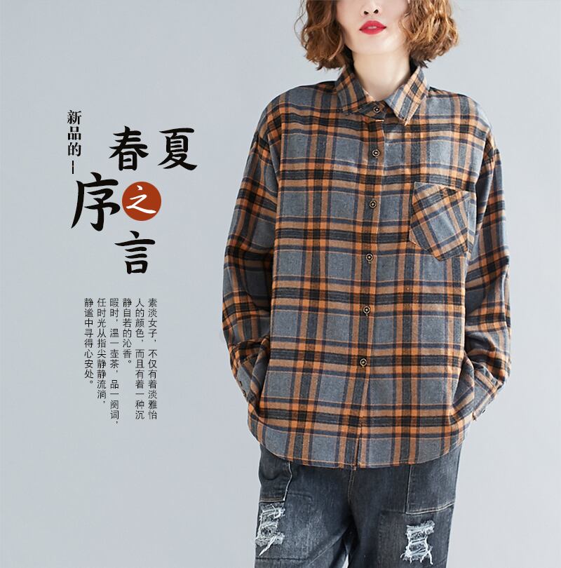 ゆったりとしたチェック柄のシャツの女性2020年秋の新しいファットmmバージョンの薄いウエスタンスタイルの長袖シャツジャケットプラスサイズの婦人服 ロング 大きめサイズ オータム 秋物 TB2-53 TB2-5394407541834