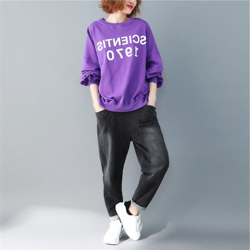 ウエスタンスタイルの年齢を減らす文字印刷のバージョンラウンドネック長袖セーター秋プラスサイズの女性の脂肪mmルーズベリーカバートップ ロング 大きめサイズ オータム 秋物 Oネック TB2-53 TB2-5367893251850