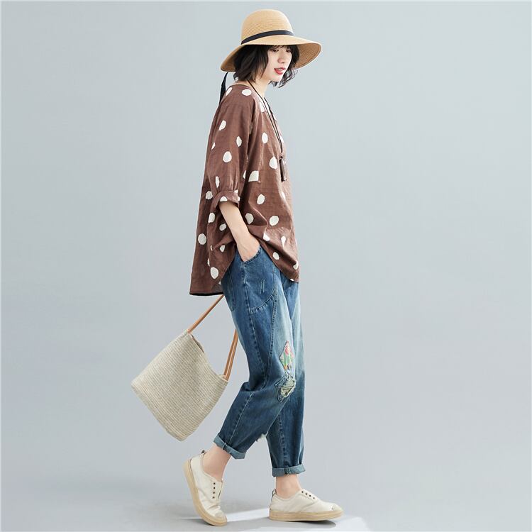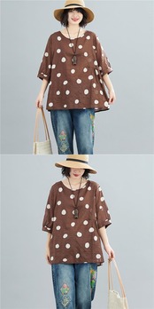 やや太めのmm夏服、オールマッチのリテラシーコットンとリネンウェーブドットが薄く、肉を覆う、半袖Tシャツ、大きいサイズの女性用カバーベリーボトミングシャツ 大きめサイズ サマー 夏物 TB2-53 TB2-5347173590429