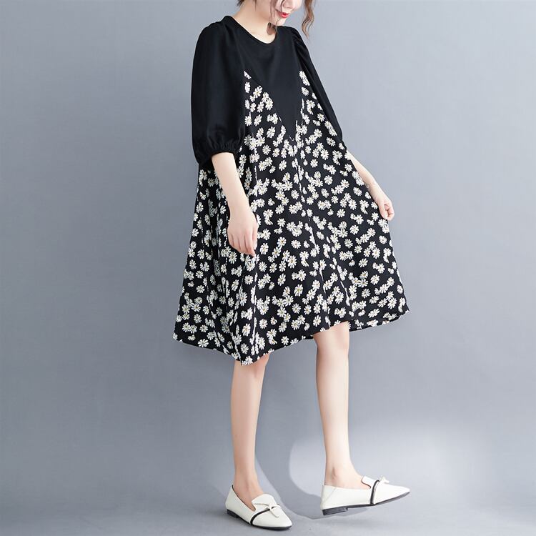 夏の新しい2020ルーズプラスサイズの5ポイントスリーブドレス女性ルーズウエスタンスタイルプリントフェイク2カジュアルレディーススカート 大きめサイズ サマー 夏物 TB2-49 TB2-4945372303380