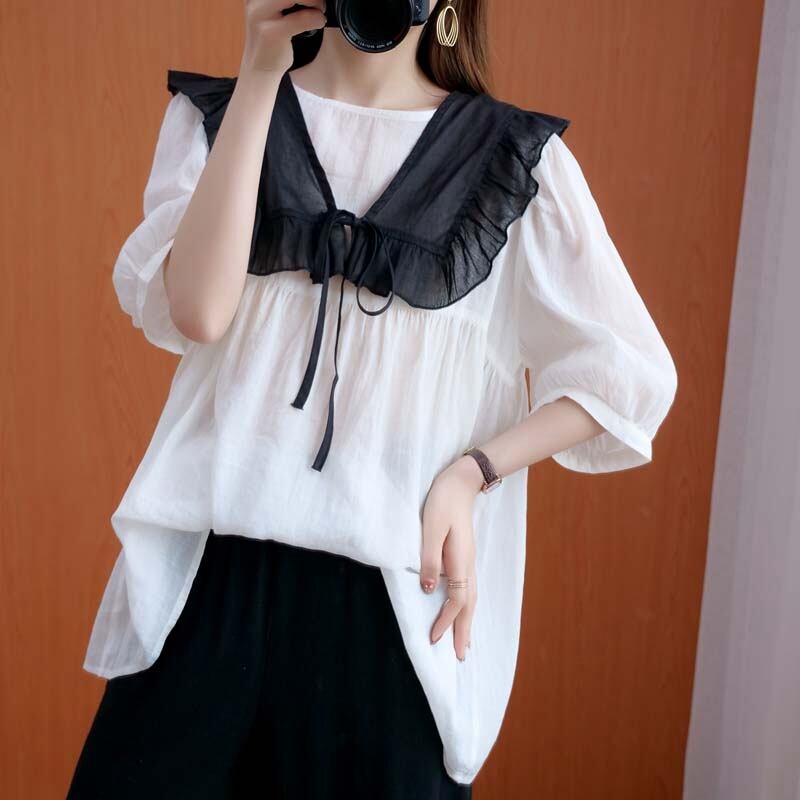 ファットシスターサマールーズ&ライトコットン&リネンシャツラージサイズレディースショールドールカラー半袖薄めベリーカバートップ 大きめサイズ 夏物 TB2-53 TB2-5330530047896