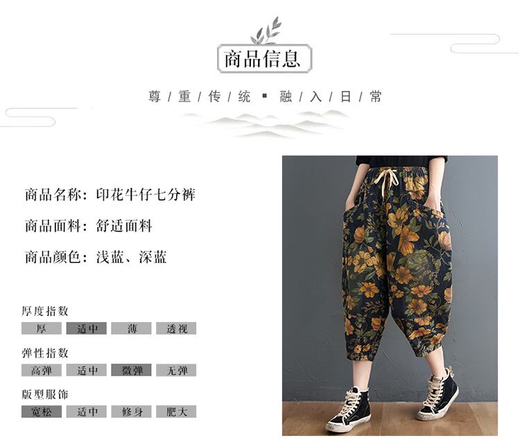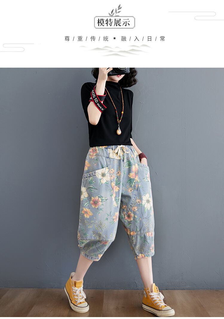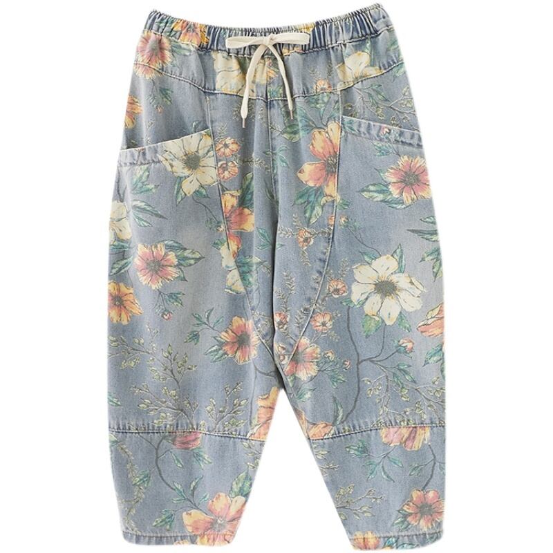 2021年夏の新しいスタイルのeignトレードラージサイズビッグポケットステッチプリントウォッシュドジーンズ伸縮性ウエストクロップドハーレムパンツ エラスティック 大きめサイズ サマー 夏物 TB2-59 TB2-5963908021483