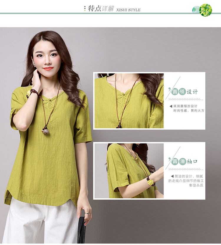 アートレトロコットンとリネン半袖Tシャツ女性2021夏ルーズラージサイズVネック無地ワイルド半袖リネントップ 大きめサイズ サマー 夏物 ソリッドカラー TB2-12 TB2-1271759194634