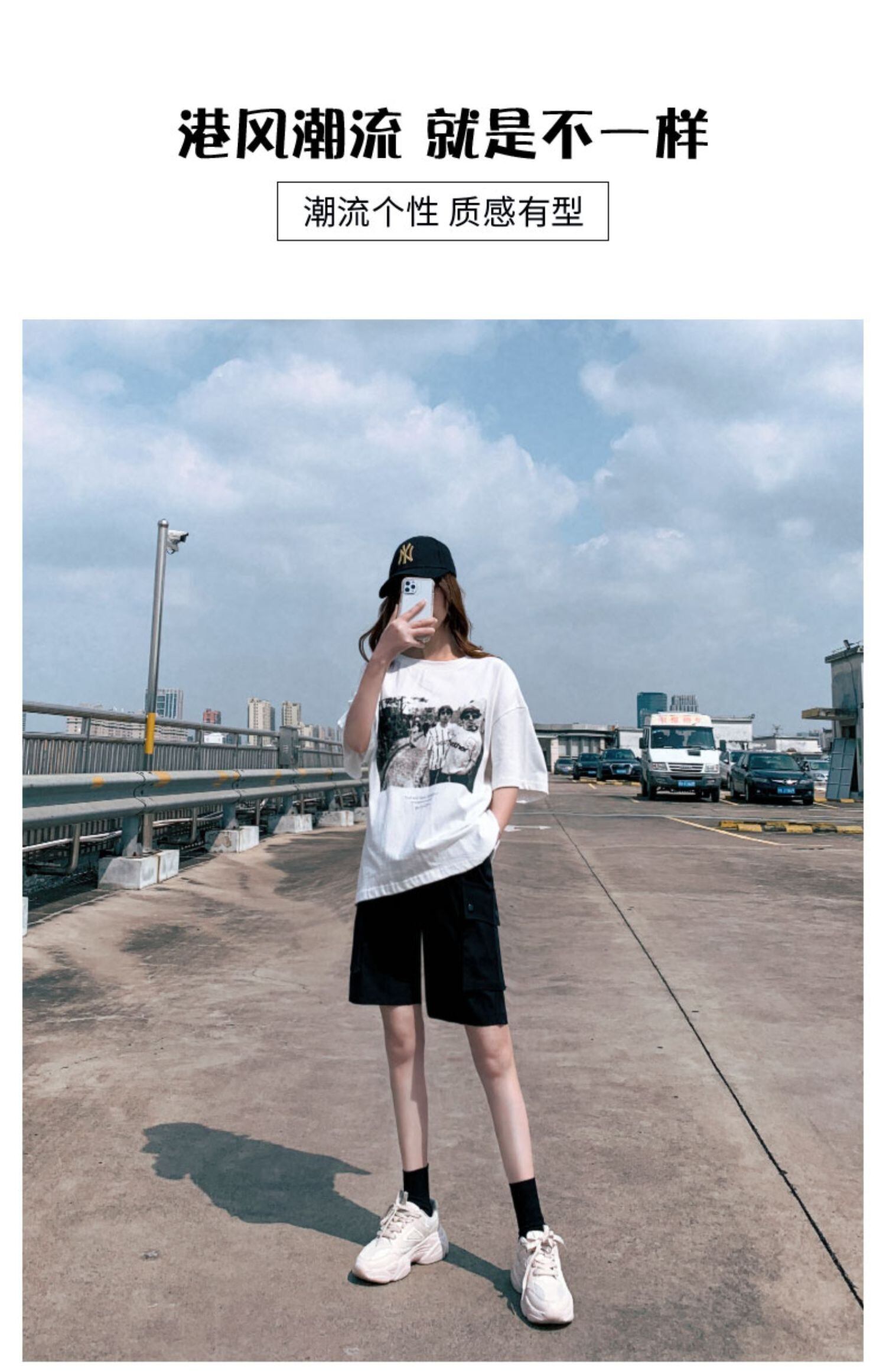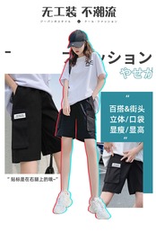 作業着ショーツ女性の夏の薄いセクションルーズアウターウェアカジュアルストレートブラックワイドレッグ5ポイントスポーツパンツタイドイン サマー 夏物 ブルマー TM2-5 TM2-584380483127