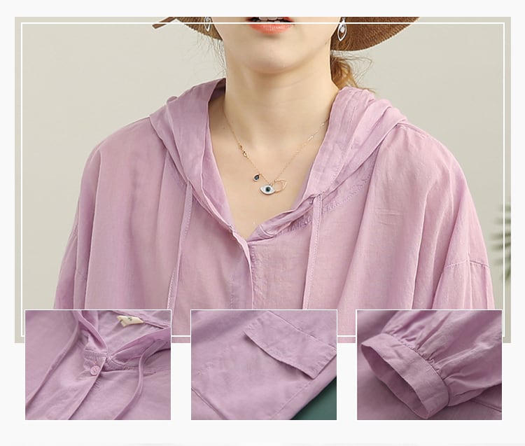 Ya Mulan2021春夏フード付きシャツ長袖シンプルトップルーズレースシャツ日焼け止め服女性 ロング スプリング 春物 サマー 夏物 TB2-56 TB2-5618651313733