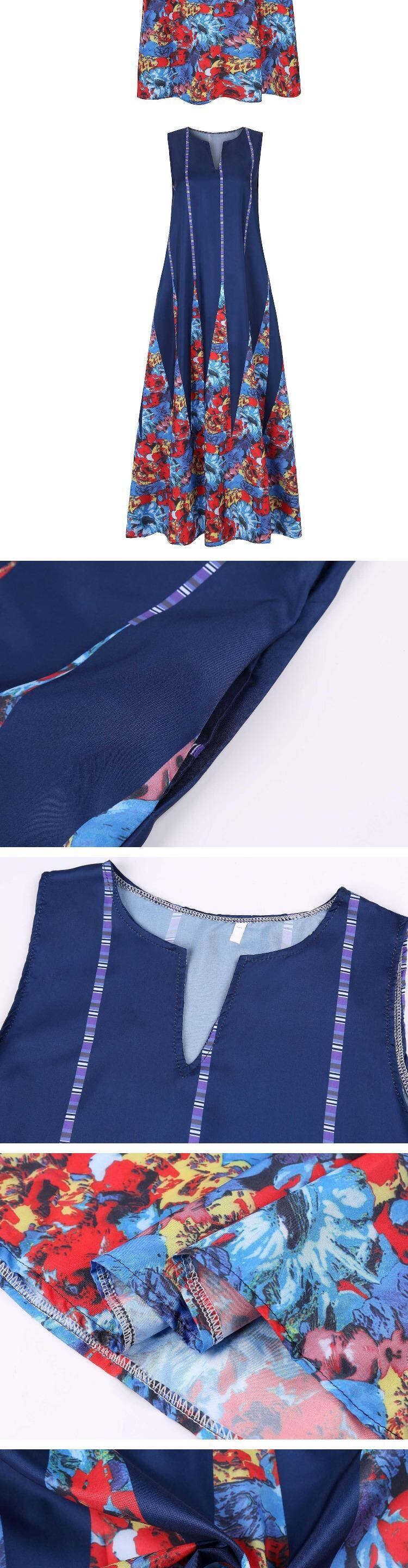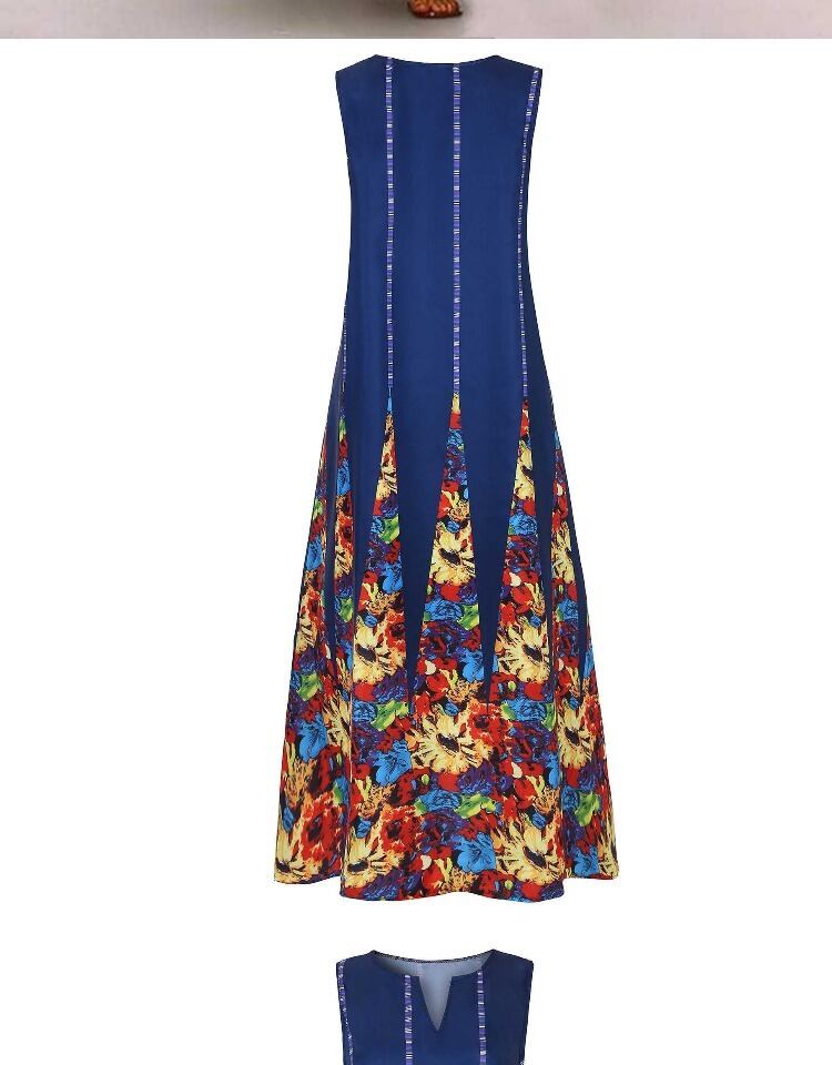 印刷Vネックノースリーブドレス女性ロングスカート TB2-37 TB2-3717966627939