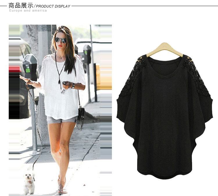 プラス脂肪プラスサイズの女性の春と夏のファッション200kg脂肪mmヨーロッパとアメリカのファッションレースバットスリーブルーズTシャツ 大きめサイズ スプリング 春物 サマー 夏物 ヨーロピアン TB2-68 TB2-6846646090181