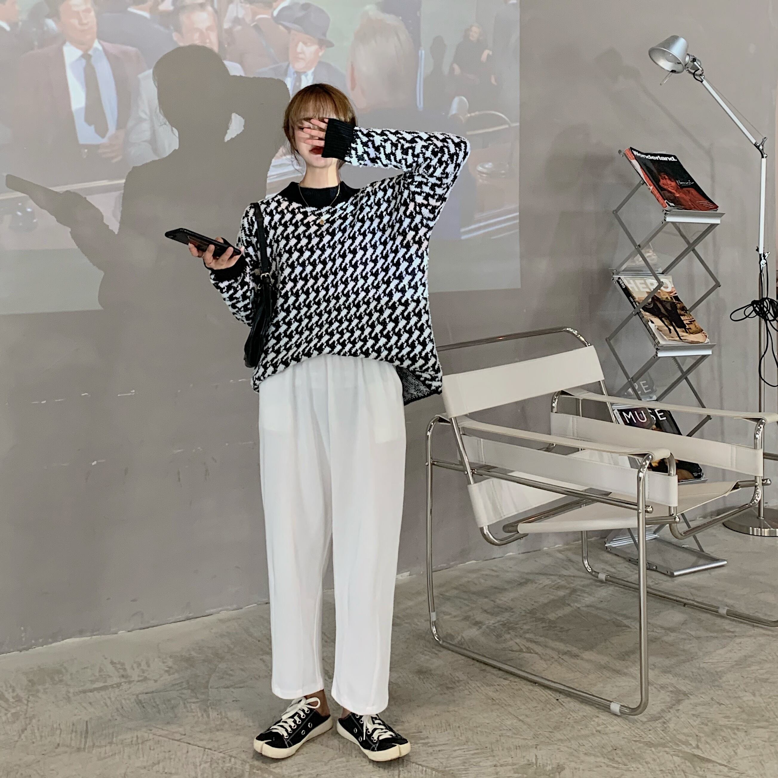 AliExpressの千鳥格子のセーター女性の秋/冬は緩い穏やかな風のプルオーバーeseセーター+おばあちゃんのパンツを着用してください ウィンター 冬物 TB2-68 TB2-6855688824253