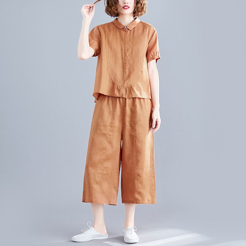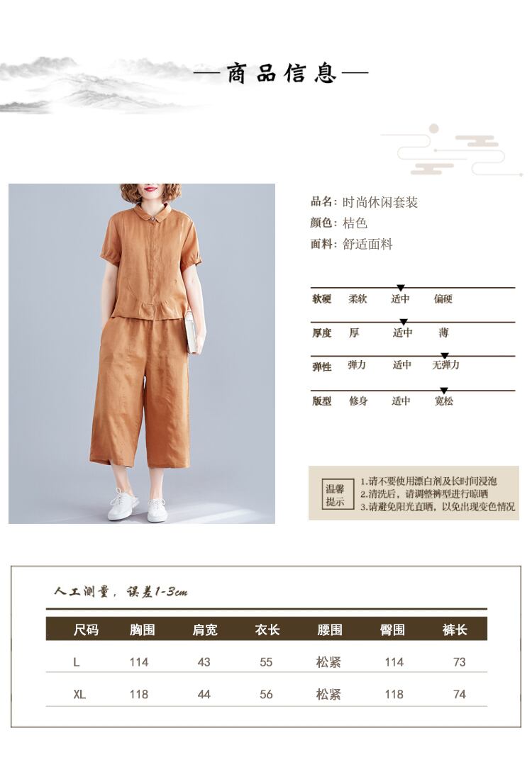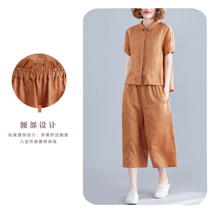 2021年夏の新しい女性プラスサイズの太った姉妹スリムスーツルーズエイジリデューシングベリーカバーシャツワイドレッグパンツツーピーススーツ 大きめサイズ サマー 夏物 ワイドパンツ TB2-49 TB2-4980426311224