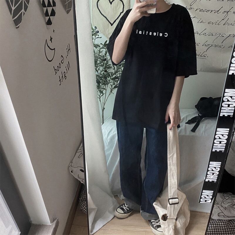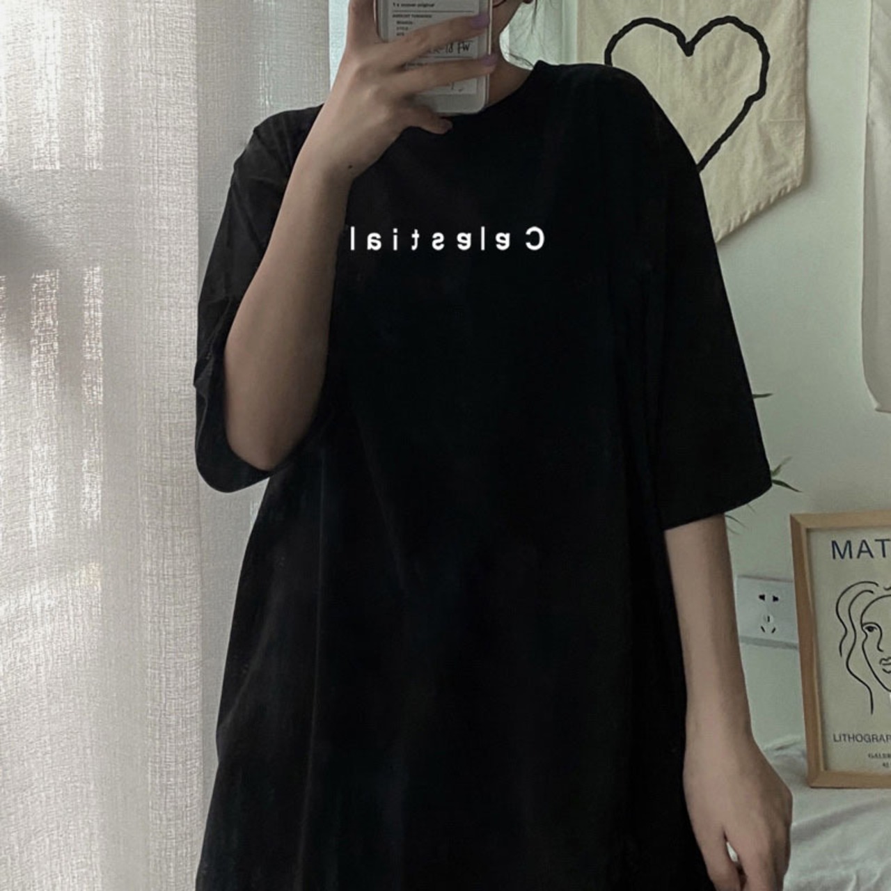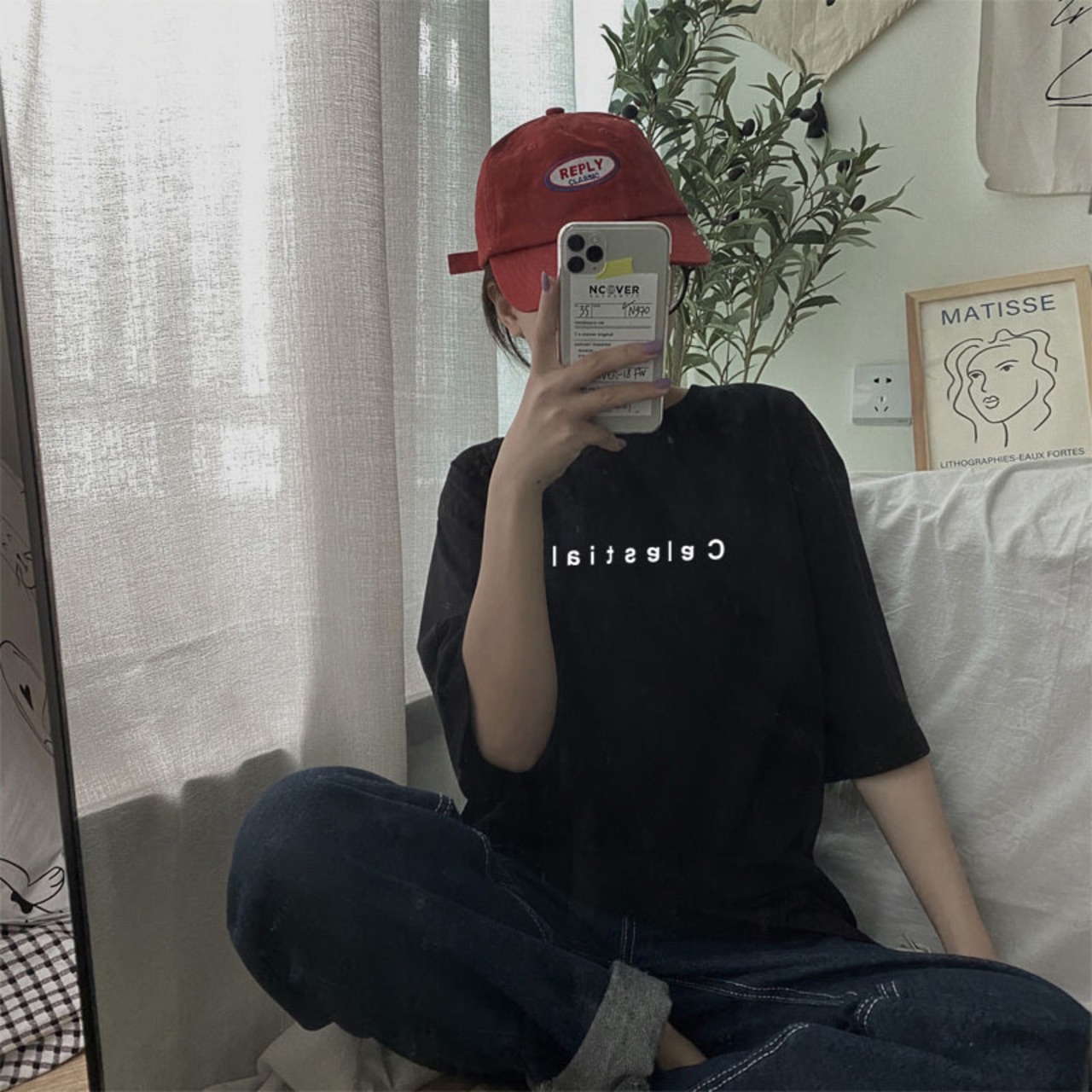 シンプルな香港スタイルのレターラウンドネック学生ワイルド半袖サマーTシャツの純綿トップ女性の新しい2021バージョン コットン 夏物 Oネック TM2-3 TM2-314766267055
