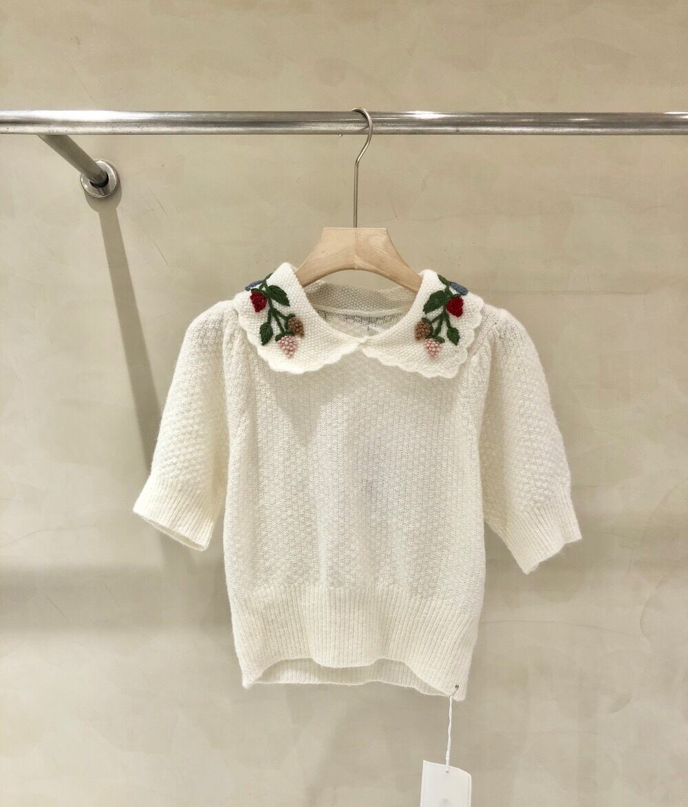 立体刺繡花薄手半袖セーターニットセーターショート女性夏甘くて年齢を減らす人形の襟トップ 刺繍 大人ガーリー スウィート キュート カジュアル サマー 夏物 フラワーデザイン TB2-52 TB2-5214159441290