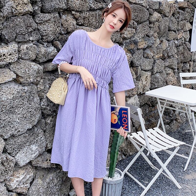 2021年新作サマーファットmm半袖ミドル丈ウエストカバープリーツラインスカートラージサイズウエストカバーヒップドレストレンド 大きめサイズ 夏物 Aライン TB2-36 TB2-3673659723757