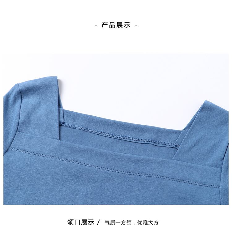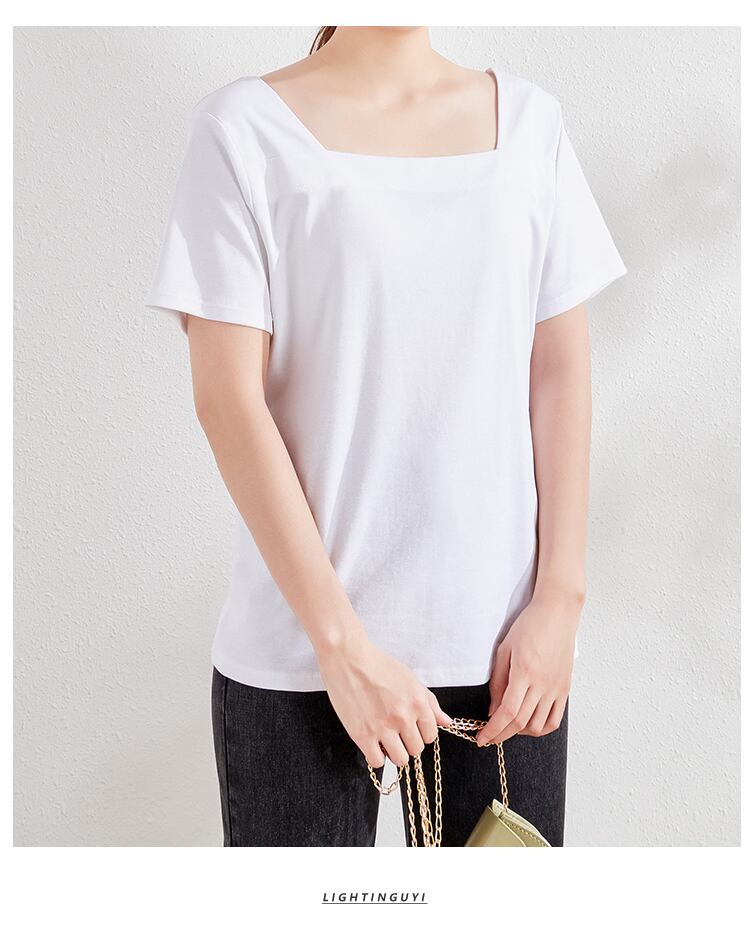 2021年夏半袖セーターレディースシンプルオールマッチTシャツ無地大サイズフレンチスクエアカラーショートトップイン 大きめサイズ サマー 夏物 ソリッドカラー スクウェア TB2-16 TB2-1634505807751