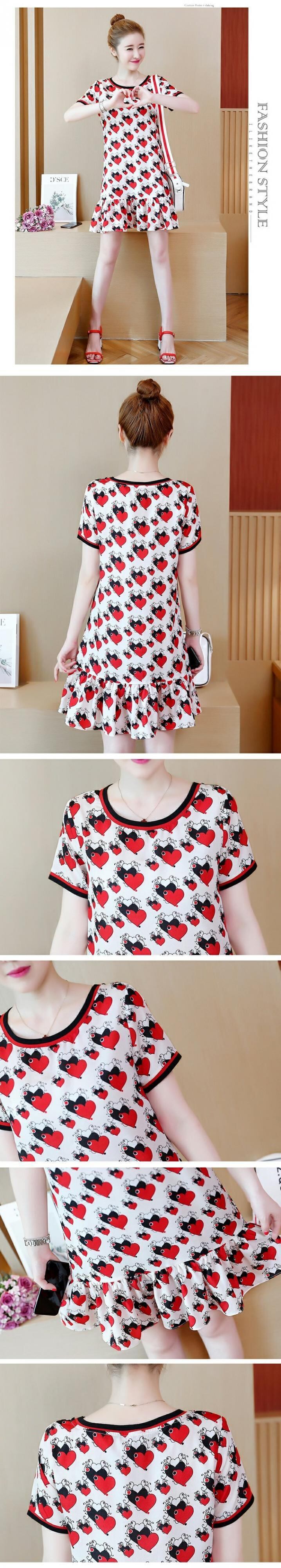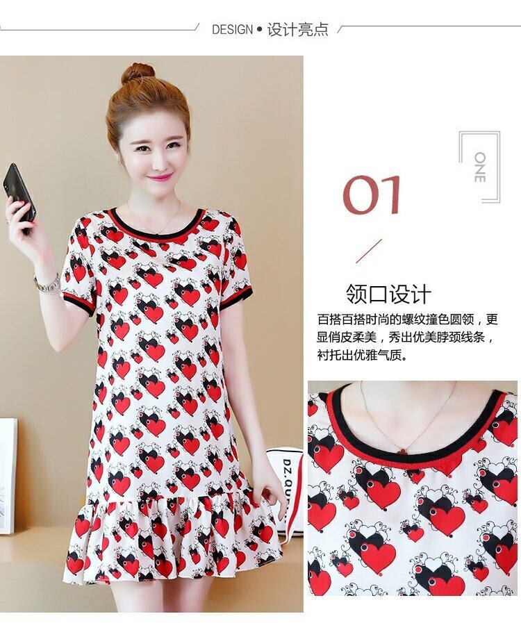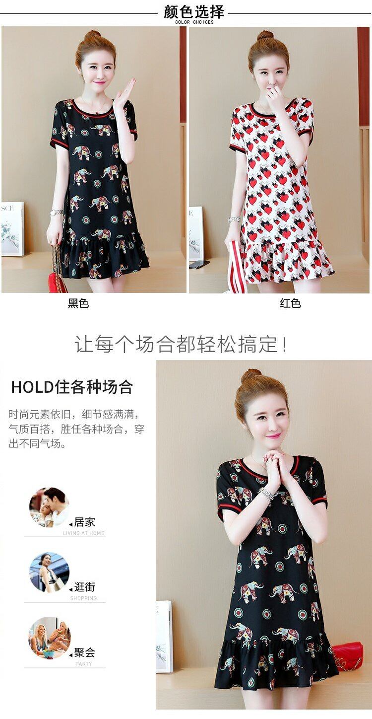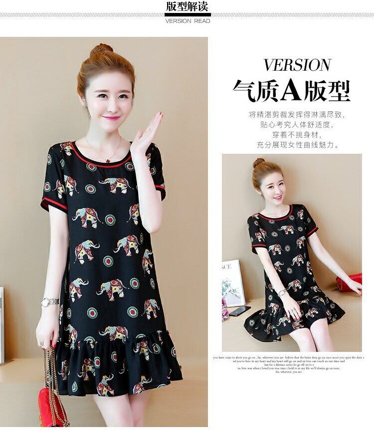 スカートの脂肪mmは薄く、腹のプリントのミッドスカート半袖プラス脂肪プラスサイズのフリルルーズサマードレスをカバーしていました 大きめサイズ 夏物 TB2-36 TB2-3639650886175
