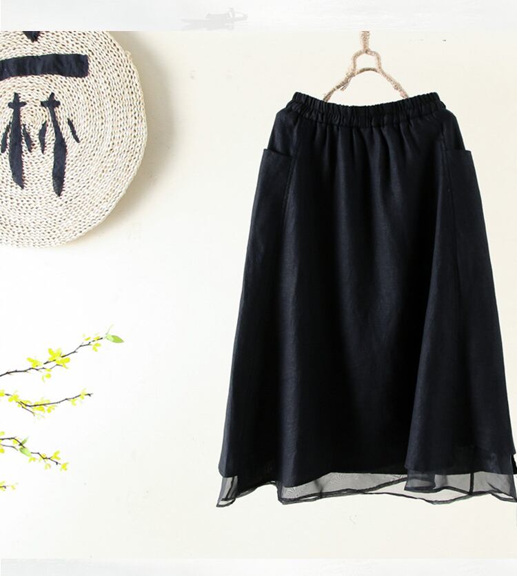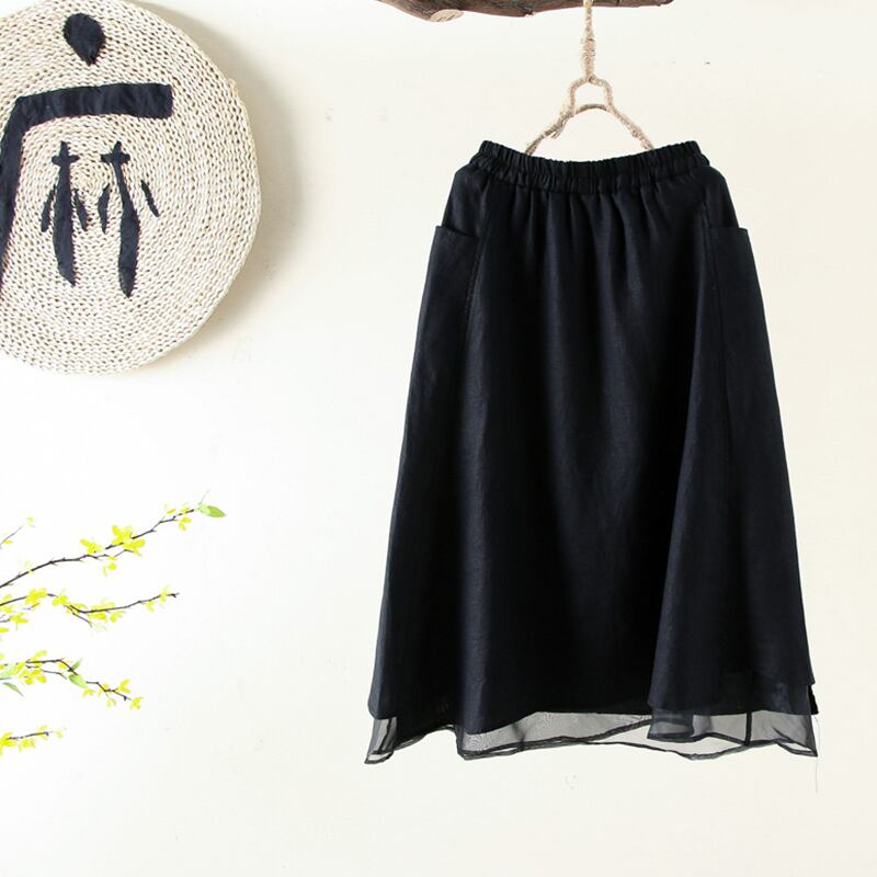 SuyiLaneリテラリーファン2層リネンレースアップスカート2020秋伸縮性ウエストルーズスカート女性 エラスティック TB2-56 TB2-5631777408788