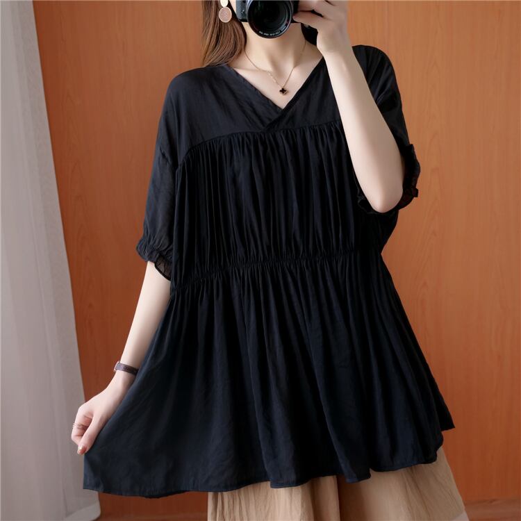 2020年夏のファットmm伸縮性ウエストルーズショーツ+プリーツVネックトップスは薄くてウエスタンスタイルのツーピーススーツ エラスティック サマー 夏物 ブルマー TB2-53 TB2-532433966402
