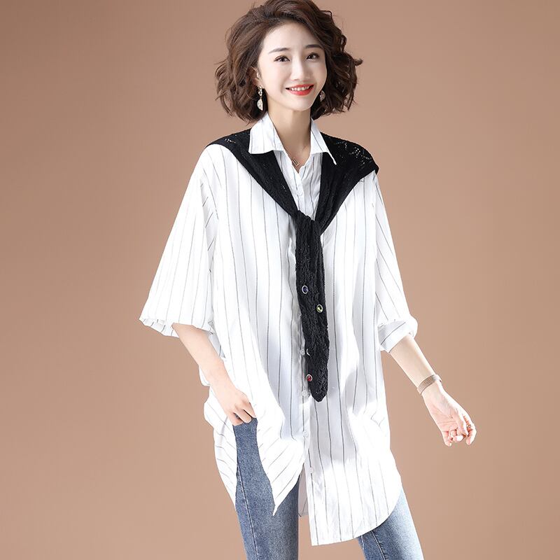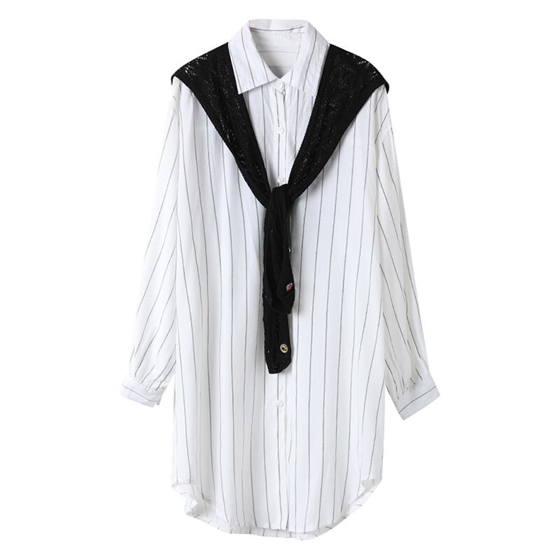 ファットシスターストライプミドル丈シャツレディースファット2020秋新作プラスサイズレディースショールツーピースジャケットmm 大きめサイズ オータム 秋物 TB2-49 TB2-4938959764680